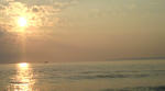 水平線に見える黒い点は佐渡に行く船で、右手に見える