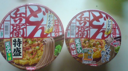 京都で日清どん兵衛のうどんとそばを買ってきました。